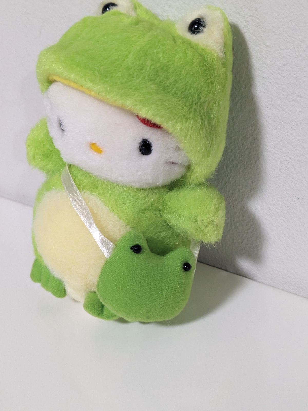 ハローキティがカエルの着ぐるみを着た、1998年製のぬいぐるみです。